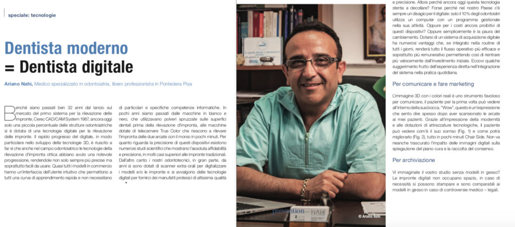Impronta dentale digitale: il tuo sorriso in anteprima Sul numero di Ottobre-Novembre 2019 della rivista scientifica “Dental Tribune” dedicato alla Prevenzione è uscito un articolo specialistico firmato Dott. Nahi! Il Dottore ha dedicato l’analisi ai vantaggi dell’integrazione del flusso digitale all’interno dello studio. In particolare, l’articolo si sofferma sui vantaggi del sistema digitale di rilevazione […]